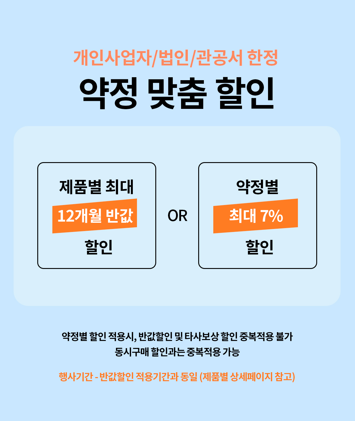✅ 약정별 할인 적용시, 반값할인 및 타사보상 할인 중복 적용불가합니다.